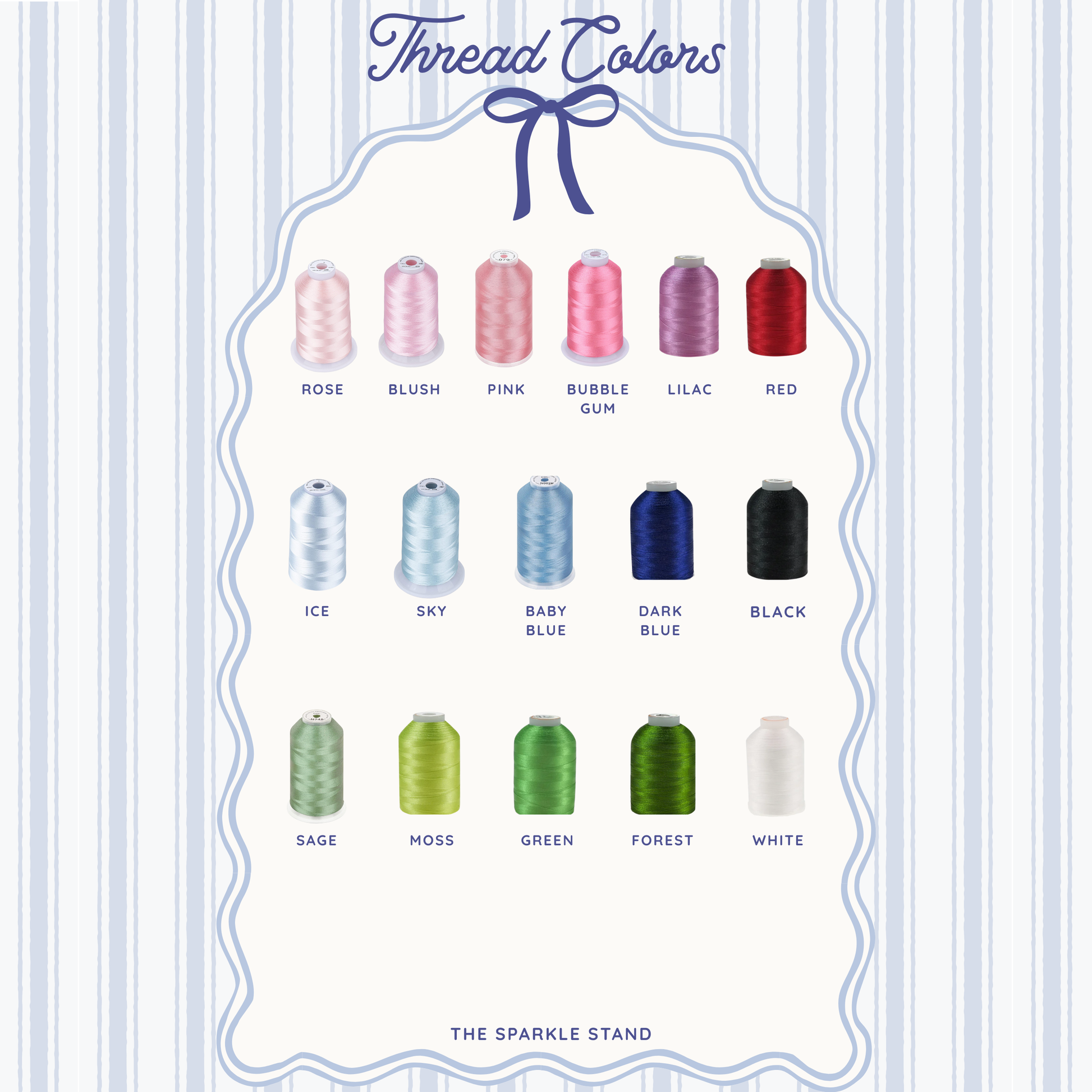 - Optional pink, red, green, or neutral thread colors